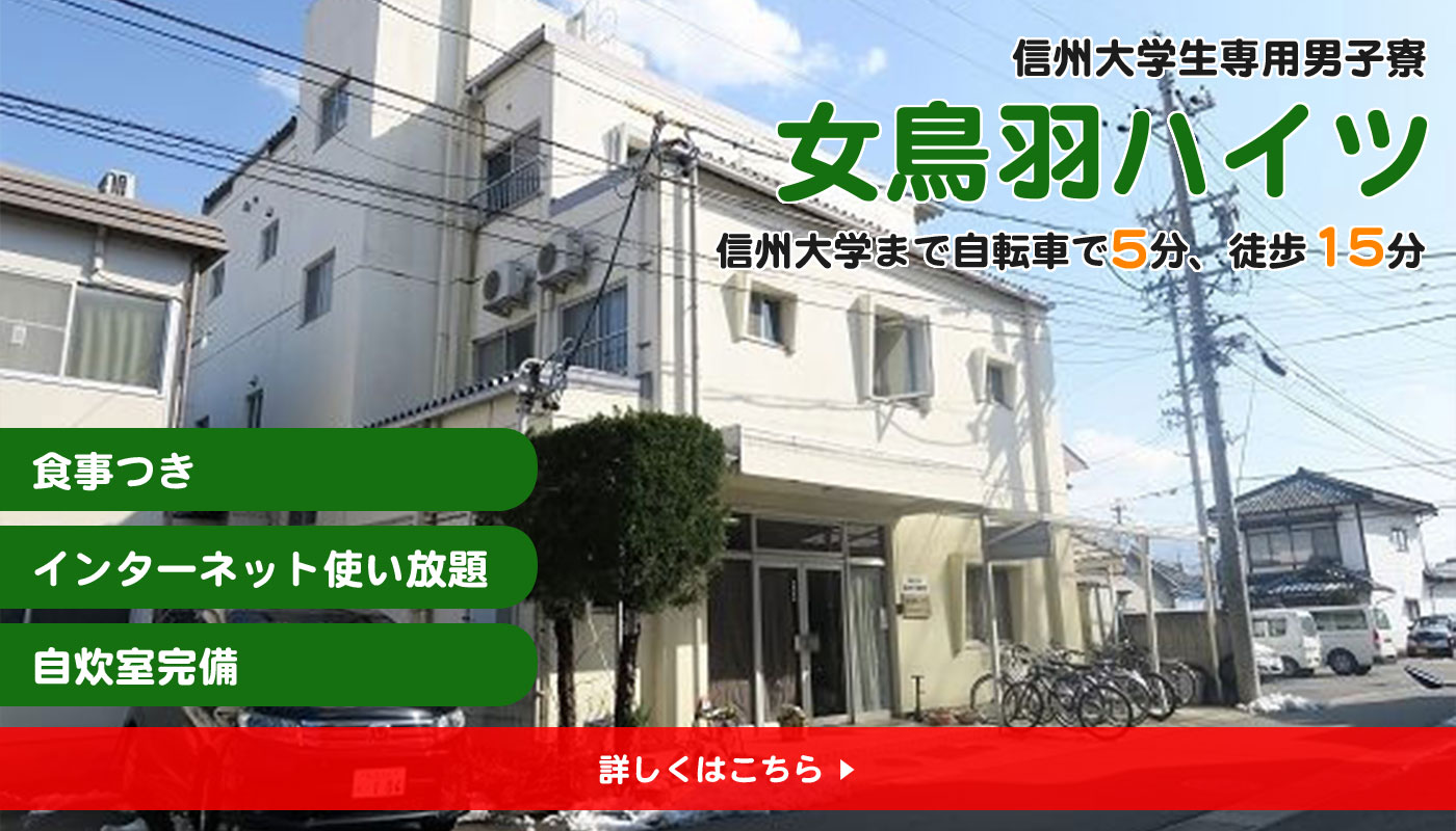 松本市を中心に「食事付き」の賃貸物件や下宿物件など学生向けの物件情報を多数取り扱っております。